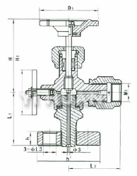 J49法蘭式壓力表針型閥主要外型及連接尺寸